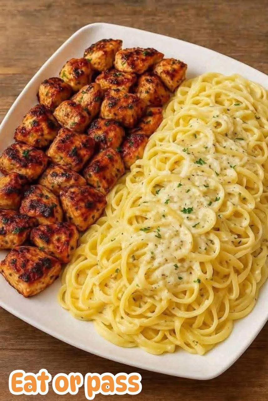 Creamy Garlic Butter Chicken & Linguine in Alfredo Sauce