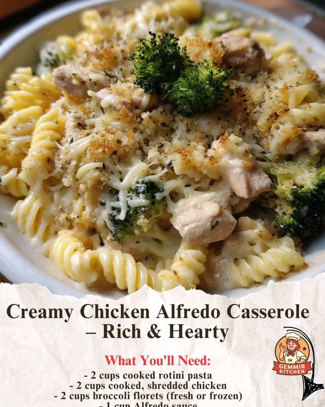 🍽️ Creamy Chicken Alfredo Casserole – Rich, Cheesy, and Full of Heart ❤️