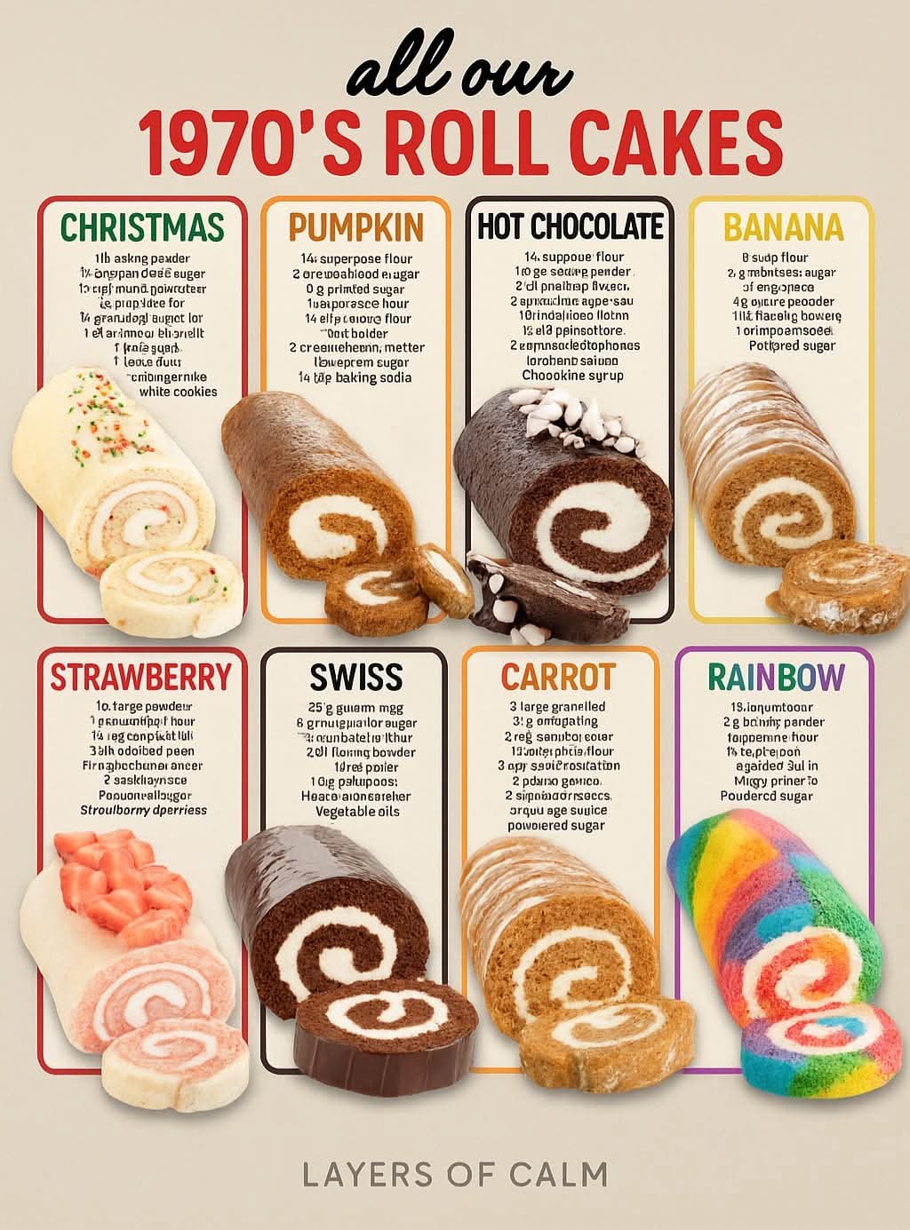 From holiday sprinkles to marshmallow fluff, these roll cakes celebrate a golden era of baking — where family, flavor, and fun came first. Whether you’re