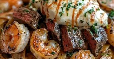Absolutely! Here’s a full-length, elevated recipe post for your Steak & Shrimp Alfredo Fettuccine, packed with: Perfect for Facebook, Instagram…
